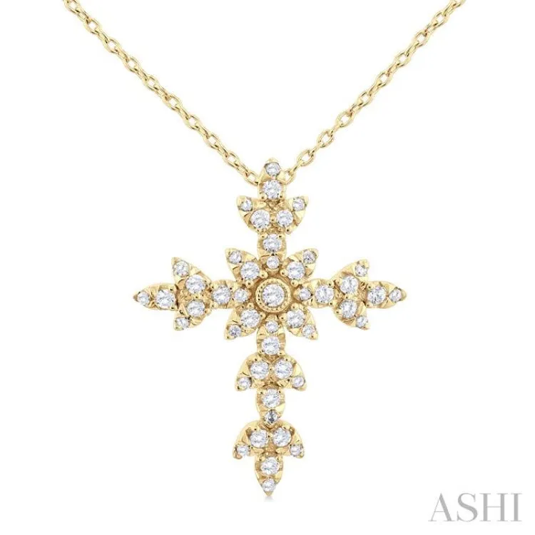 1/4 Ctw Floral Leaf Cross Round Cut Diamond Fashion Pendant With Chain in 14K Yellow Gold