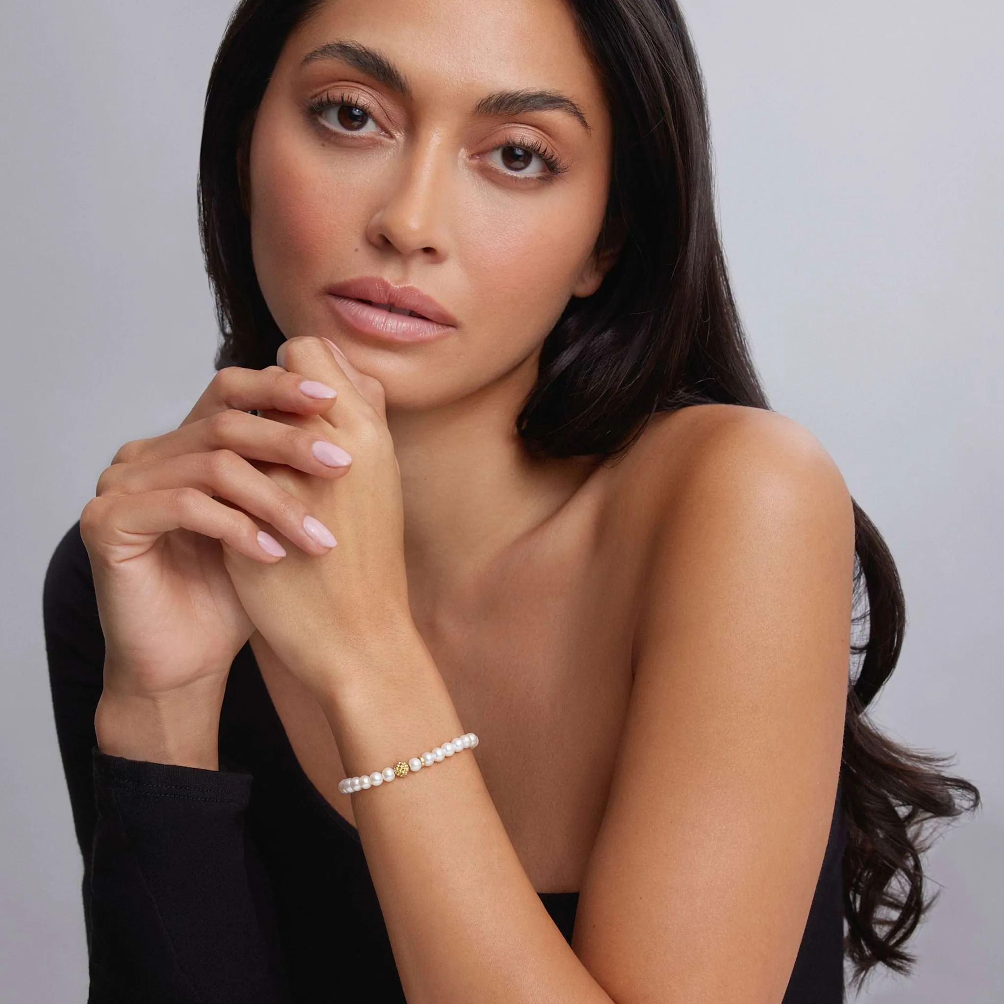 Pearl bracelet with an 18K gold Caviar beaded station that is ideal to style with various bracelets for a unique look.