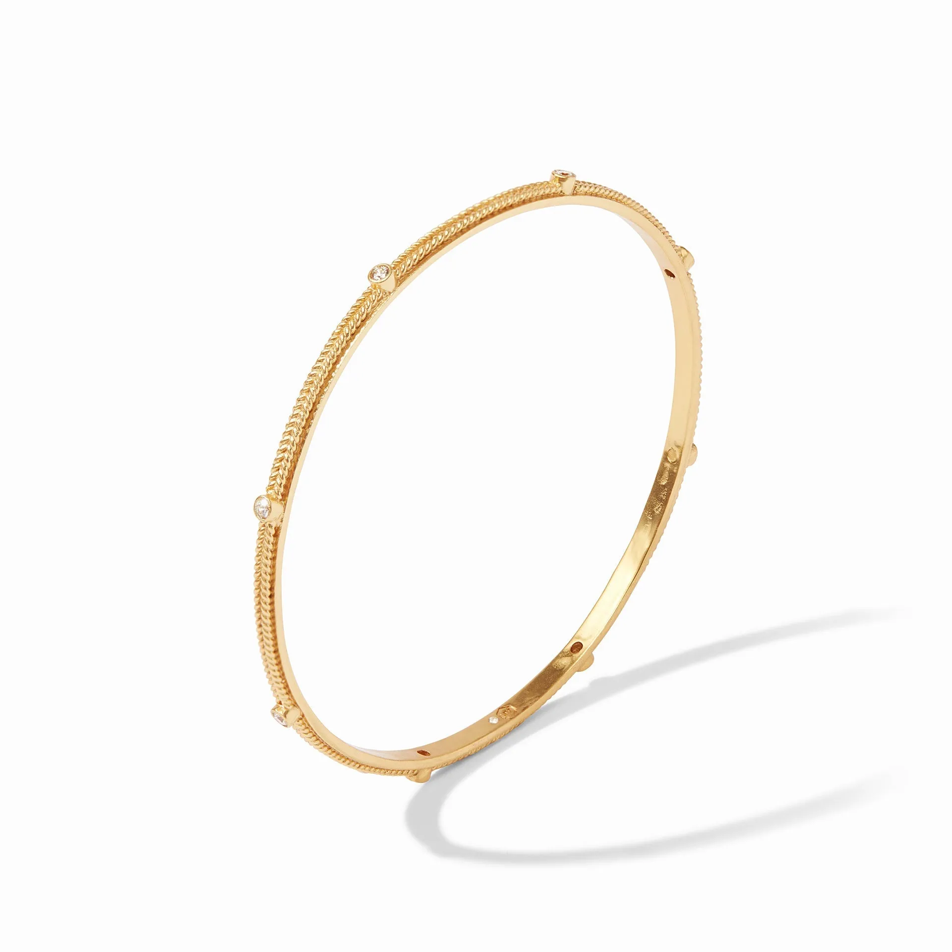 The eight small stones along the ridge of this golden bangle make stacking more fun each sparkling dot makes a group of these worn together look like a unique constellation.