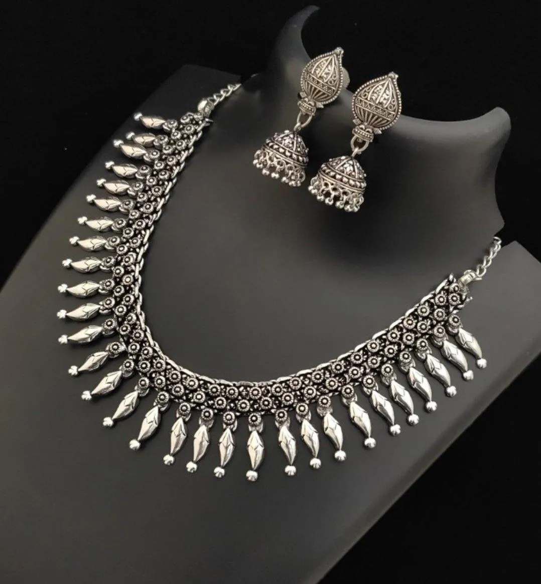 Material: High quality floral patterned choker Neckset. German silver finish Jewellery with short length chain and metal lock at back. Specially designed for the Fashionista in you.
