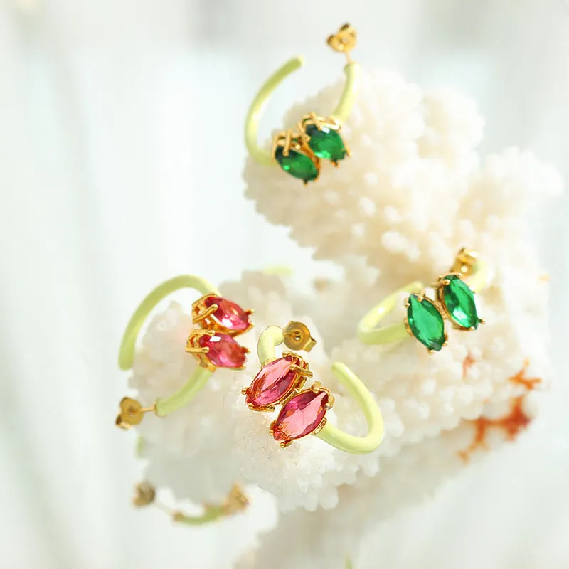 - Adorned with stunning red and green zircon drop glue for a touch of elegance
