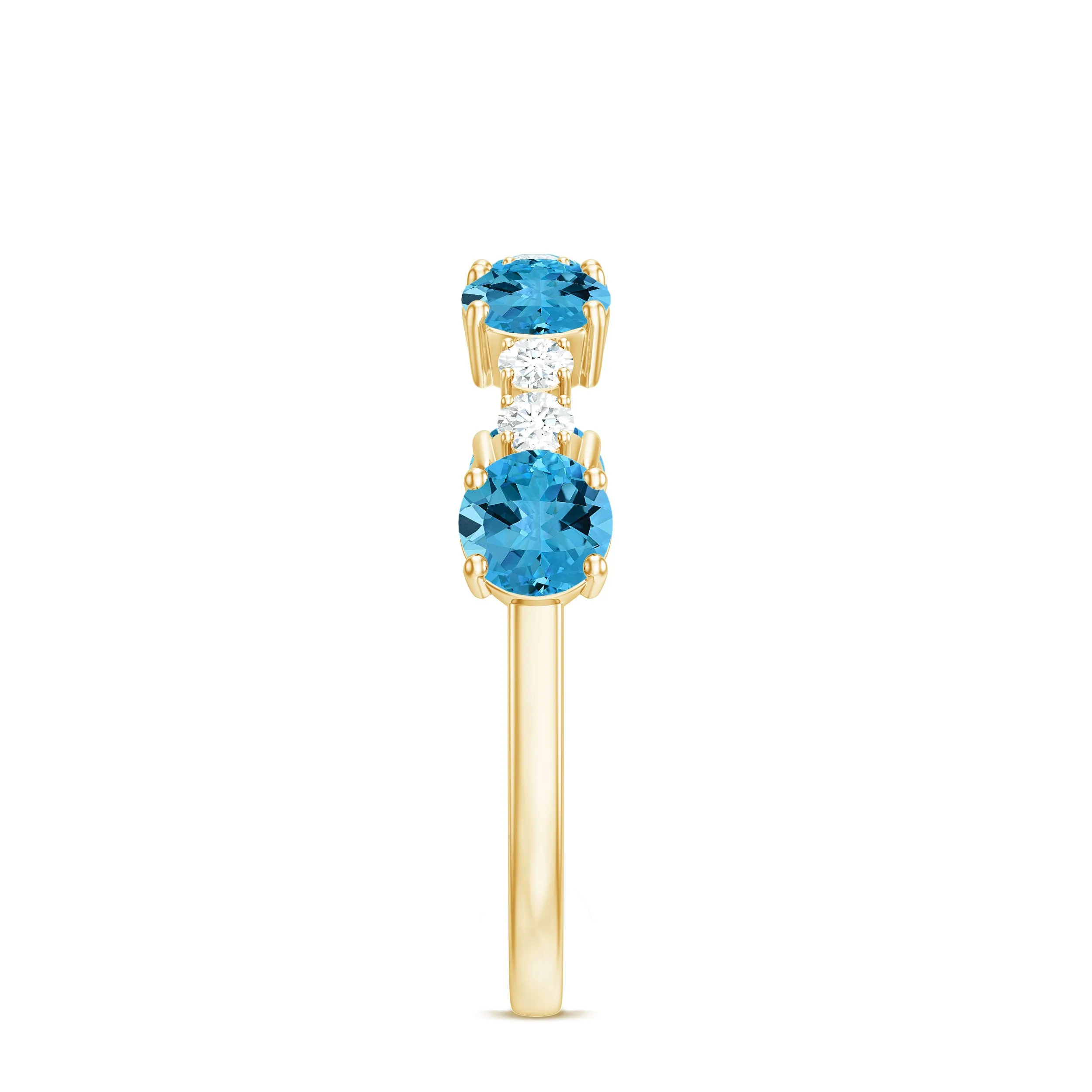 Capture everlasting beauty with this Half Eternity Ring featuring Swiss Blue Topaz and Diamond gemstones, a stunning combination of grace and brilliance.