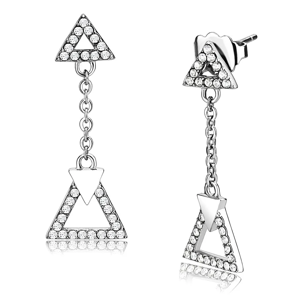 High polished (no plating) Stainless Steel Earrings with AAA Grade CZ in Clear for Women Clear Stone Color Style DA068