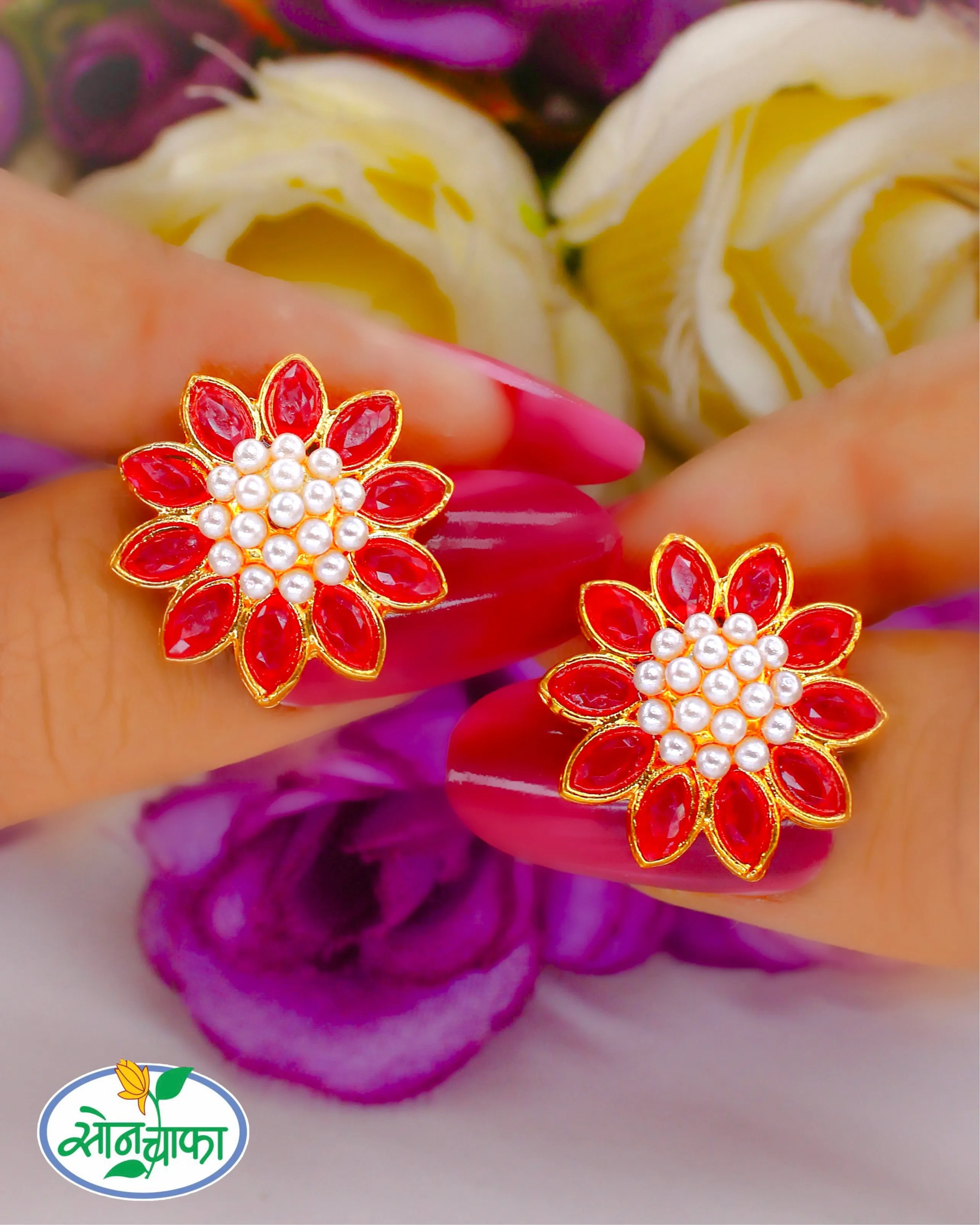 Sonchafa Jewellery offers this pair of moti earrings for women who love to adorn pearl jewellery. These are crafted from golden finish metal and ensure high durability. These are studded with pink stone along with pearl beads. These earrings are good in quality and rust-resistant as well.